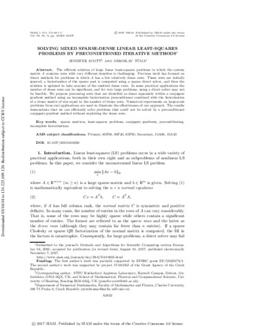 Solving mixed sparse-dense linear least-squares problems by preconditioned iterative methods.
