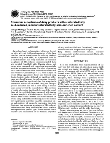 Consumer acceptance of dairy products with a saturated fatty acid-reduced, monounsaturated fatty acid-enriched content.