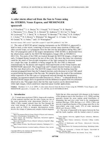 Rouillard, A. P., Davies, J. A., Forsyth, R. J., Savani, N. P., Sheeley, N. R., Thernisien, A., Zhang, T.-L., Howard, R. A., Anderson, B., Carr, C. M., Tsang, S., Lockwood, M. ORCID: https://orcid.org/0000-0002-7397-2172, Scott, C. J.