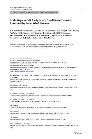 Rouillard, A. P., Savani, N. P., Davies, J. A., Lavraud, B., Forsyth, R. J., Morley, S. K., Opitz, A., Sheeley, N. R., Burlaga, L. F., Sauvaud, J.-A., Simunac, K. D. C., Luhmann, J. G., Galvin, A. B., Crothers, S. R., Davis, C. J. ORCID: https://orcid.org/0000-0001-6411-5649, Harrison, R. A., Lockwood, M.
