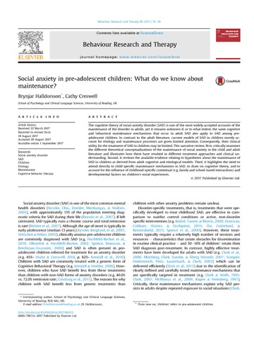 Halldorsson, B. and Creswell, C. (2017) Social anxiety in pre-adolescent children: what do we know about maintenance? Behaviour Research and Therapy, 99. pp. 19-36. ISSN 0005-7967 doi: 10.1016/j.brat.2017.08.013