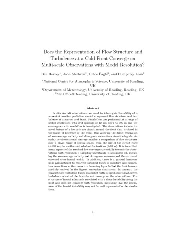 Does the representation of flow structure and turbulence at a cold front converge on multi-scale observations with model resolution?