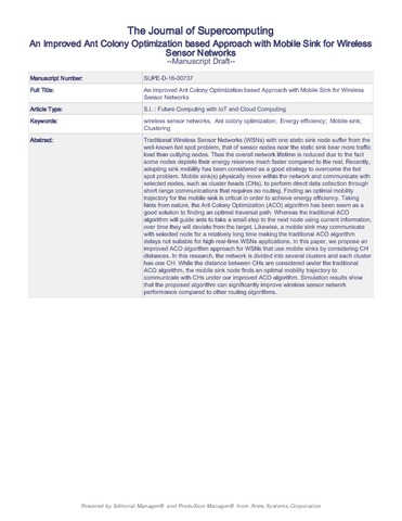 An improved ant colony optimization-based approach with mobile sink for wireless sensor networks.