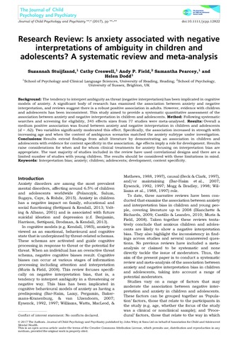Is anxiety associated with negative interpretations of ambiguity in children and adolescents? A systematic review and meta-analysis.