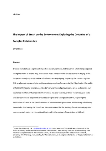 The impact of Brexit on the environment: exploring the dynamics of a complex relationship.