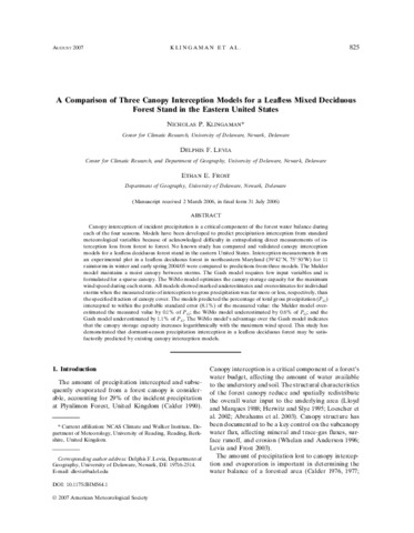 A comparison of three canopy interception models for a leafless mixed deciduous forest stand in the eastern United States.