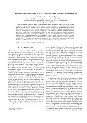 Time correlation functions in the Lebwohl-Lasher model of liquid crystals.