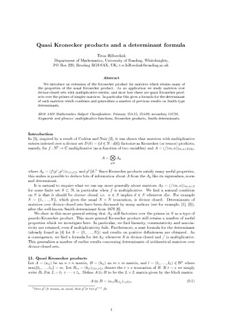 Hilberdink, T. (2018) Quasi Kronecker products and a determinant formula. Linear Algebra and its Applications, 87 (102). pp. 87-102. ISSN 0024-3795 doi: 10.1016/j.laa.2017.09.011
