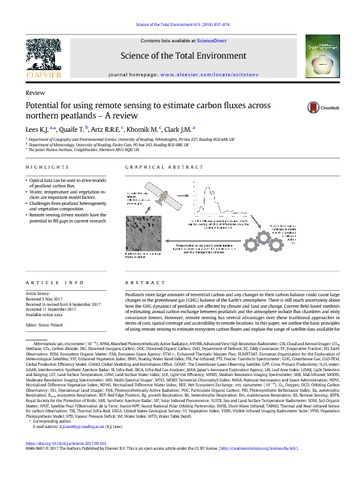 Lees, K. J., Quaife, T. orcid id iconORCID: https://orcid.org/0000-0001-6896-4613, Artz, R. E. E., Khomik, M. and Clark, J. M. orcid id iconORCID: https://orcid.org/0000-0002-0412-8824 (2018) Potential for using remote sensing to estimate carbon fluxes across Northern peatlands: a review. Science of the Total Environment, 615. pp. 857-874. ISSN 0048-9697 doi: 10.1016/j.scitotenv.2017.09.103