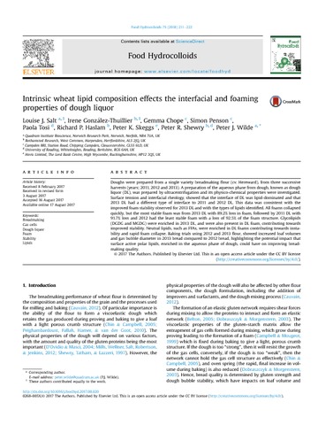 Intrinsic wheat lipid composition effects the interfacial and foaming properties of dough liquor.