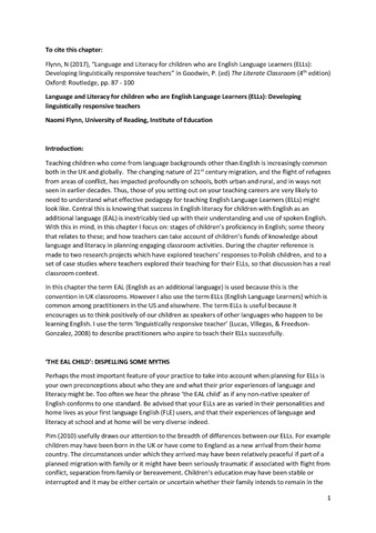 Teaching children who come from language backgrounds other than English is increasingly common both in the UK and globally. The changing nature of 21st century migration, and the flight of refugees from areas of conflict, has impacted profoundly on schools, both urban and rural, and in ways not seen in earlier decades. Thus, those of you setting out on your teaching careers are very likely to need to understand what effective pedagogy for teaching English Language Learners (ELLs) might look like. Central this is knowing that success in English literacy for children with English as an additional language (EAL) is inextricably tied up with their understanding and use of spoken English. With this in mind, in this chapter I focus on: stages of children’s proficiency in English; some theory that relates to these; and how teachers can take account of children’s funds of knowledge about language and literacy in planning engaging classroom activities. During the chapter reference is made to two research projects which have explored teachers’ responses to Polish children, and to a set of case studies where teachers explored their teaching for their ELLs, so that discussion has a real classroom context. In this chapter the term EAL (English as an additional language) is used because this is the convention in UK classrooms. However I also use the term ELLs (English Language Learners) which is common among practitioners in the US and elsewhere. The term ELLs is useful because it encourages us to think positively of our children as speakers of other languages who happen to be learning English. I use the term ‘linguistically responsive teacher’ (Lucas, Villegas, & Freedson-Gonzalez, 2008) to describe practitioners who aspire to teach their ELLs successfully.