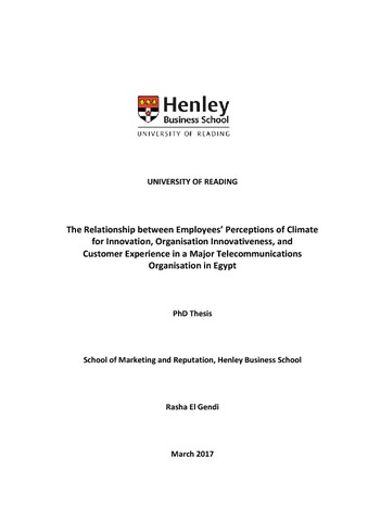 El Gendi, R. (2017) The relationship between employees’ perceptions of climate for innovation, organisation innovativeness, and customer experience in a major telecommunications organisation in Egypt. PhD thesis, University of Reading.