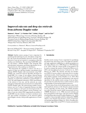 Improved rain rate and drop size retrievals from airborne Doppler radar.