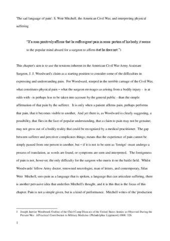 Bending, L. (2018) 'The sad language of pain': S. Weir Mitchell, the American Civil War, and interpreting physical suffering. In: Gonzalez-Polledo, E. J. and Tarr, J. (eds.) Painscapes: framing pain communication. Palgrave Macmillan, London, UK, pp. 25-40. ISBN 9781349952717
