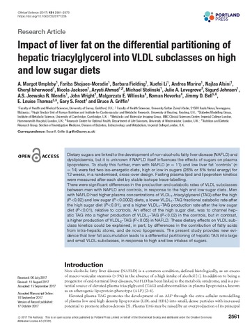 Impact of liver fat on the differential partitioning of hepatic triacylglycerol into VLDL subclasses on high and low sugar diets.