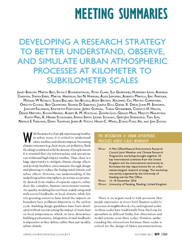 Developing a research strategy to better understand, observe, and simulate urban atmospheric processes at kilometer to subkilometer scales.