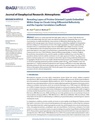 Revealing layers of pristine oriented crystals embedded within deep ice clouds using differential reflectivity and the co-polar correlation coefficient.