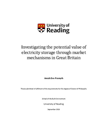 Poonyth, A. D. (2017) Investigating the potential value of electricity storage through market mechanisms in Great Britain. PhD thesis, University of Reading.