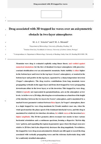Teixeira, M.A.C., Arga´ın, J.L. and Miranda, P.M.A. 2013. Drag produced by trapped lee waves and propagating mountain waves in a two-layer atmosphere. Q. J. R. Meteorol. Soc. 139, 964–981.
