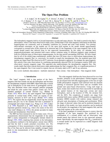Linker, J. A., Caplan, R. M., Downs, C., Riley, P., Mikic, Z., Lionello, R., Henney, C. J., Arge, C. N., Liu, Y., Derosa, M. L., Yeates, A. and Owens, M. J. ORCID: https://orcid.org/0000-0003-2061-2453