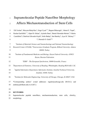 Supramolecular peptide nanofiber morphology affects mechanotransduction of stem cells.