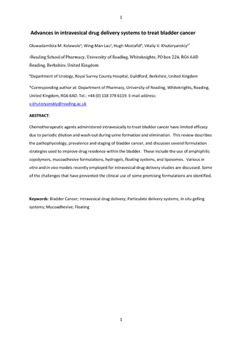 Advances in intravesical drug delivery systems to treat bladder cancer.