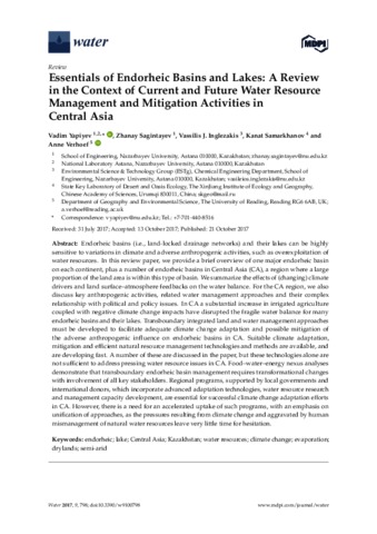 Essentials of endorheic basins and lakes: a review in the context of current and future water resource management and mitigation activities in Central Asia.
