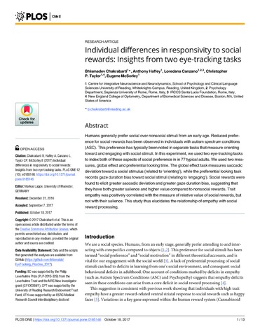 Individual differences in responsivity to social rewards: insights from two eye-tracking tasks.