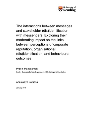 Saraeva, A. orcid id iconORCID: https://orcid.org/0000-0003-2223-4310 (2017) The interactions between messages and stakeholder (dis)identification with messengers: exploring their moderating impact on the links between perceptions of corporate reputation, organisational (dis)identification, and behavioural outcomes. PhD thesis, University of Reading.