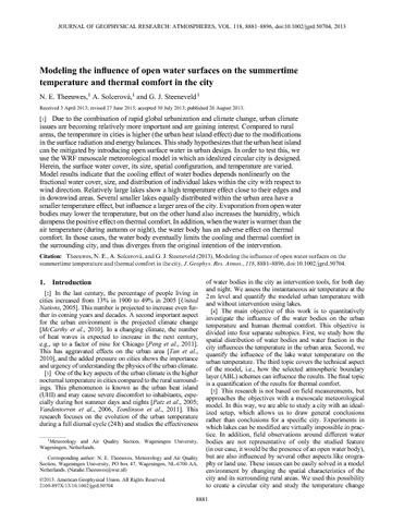 Modeling the influence of open water surfaces on the summertime temperature and thermal comfort in the city.