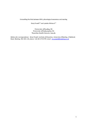 Unraveling the links between rapid automatized naming (RAN), phonological awareness, and reading.