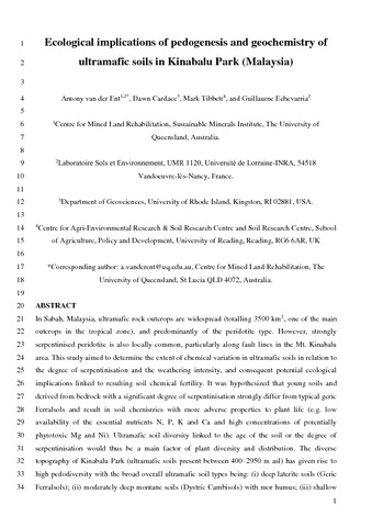 Ecological implications of pedogenesis and geochemistry of ultramafic soils in Kinabalu Park (Malaysia).