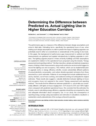 Determining the difference between predicted vs. actual lighting use in higher education corridors.