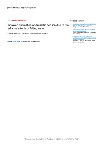 Li, J.-L. F., Richardson, M., Hong, Y., Lee, W.-L., Wang, Y.-H., Yu, J.-Y., Fetzer, E., Stephens, G. and Liu, Y. (2017) Improved simulation of Antarctic sea ice due to the radiative effects of falling snow. Environmental Research Letters, 12 (8). 084010. ISSN 1748-9326 doi: 10.1088/1748-9326/aa7a17