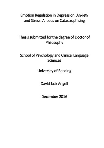 Angell, D. J. (2017) Emotion regulation in depression, anxiety and stress: a focus on catastrophising. PhD thesis, University of Reading.