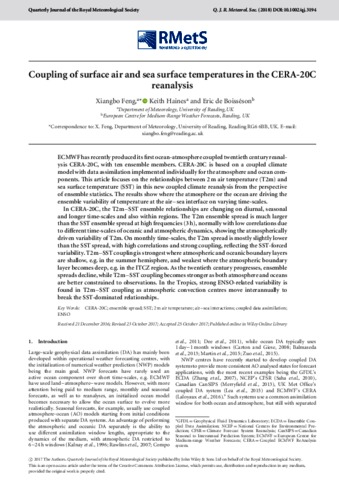 Coupling of surface air and sea surface temperatures in the CERA-20C reanalysis.