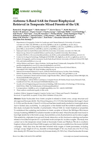 Airborne S-Band SAR for forest biophysical retrieval in temperate mixed forests of the UK.