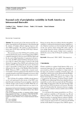 Vera, C. S., Alvarez, M. S., Gonzalez, P. L. M. ORCID: https://orcid.org/0000-0003-0154-0087, Liebmann, B. and Kiladis, G. N.