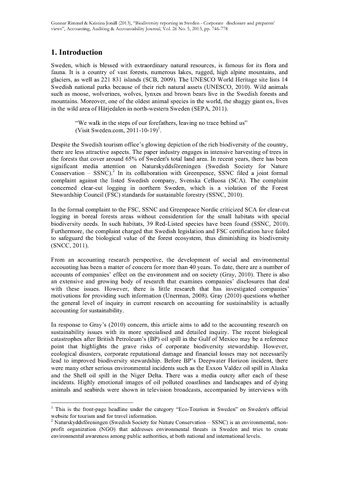 Biodiversity reporting in Sweden: corporate disclosure and preparers’ views.