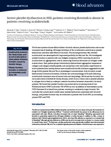 • 11. Levade M, David E, Garcia C, et al. Ibrutinib treatment affects collagen and von Willebrand factor-dependent platelet functions. Blood, 2014; 124: 3991-3995.