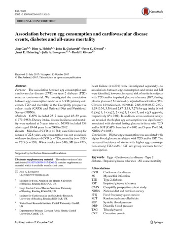 | Uncontrolled Keywords | Eggs · Cardiovascular disease · Type 2 diabetes · Impaired glucose tolerance · All-cause mortality |