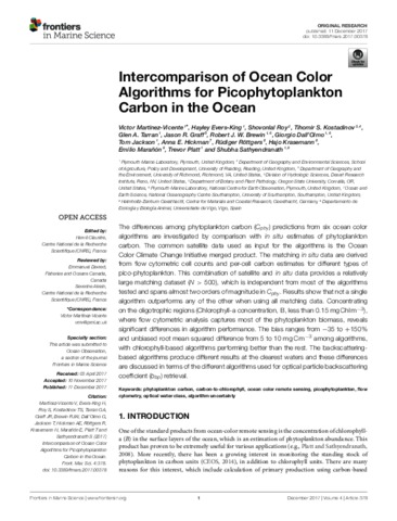 Intercomparison of ocean color algorithms for picophytoplankton carbon in the ocean.