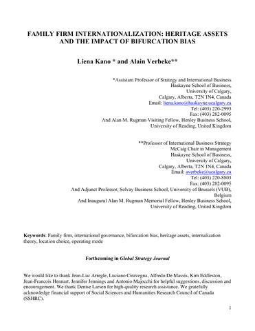 Kano, L. and Verbeke, A. (2018) Family firm internationalization: heritage assets and the impact of bifurcation bias. Global Strategy Journal, 8 (1). pp. 158-183. ISSN 2042-5805 doi: 10.1002/gsj.1186