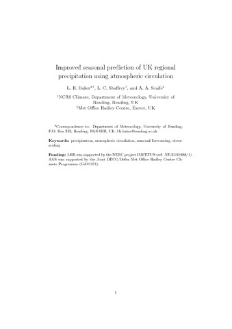 Improved seasonal prediction of UK regional precipitation using atmospheric circulation.