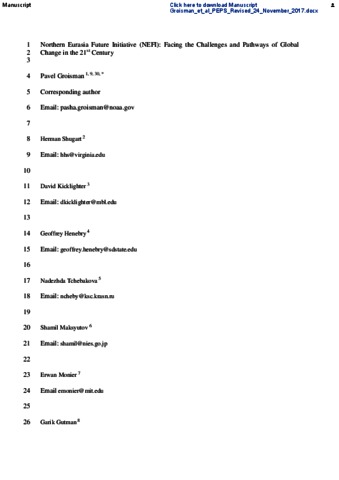 Northern Eurasia Future Initiative (NEFI): facing the challenges and pathways of global change in the 21st century.