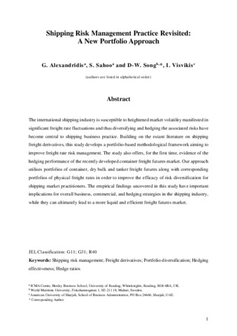 Alexandridis, G., Sahoo, S., Song, D.-W. and Visvikis, I. (2018) Shipping risk management practice revisited: a new portfolio approach. Transportation Research Part A, 110. pp. 274-290. ISSN 0965-8564 doi: 10.1016/j.tra.2017.11.014