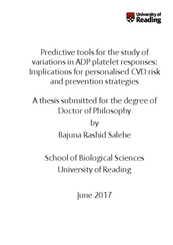 Salehe, B. R. (2017) Predictive tools for the study of variations in ADP platelet responses: implications for personalised CVD risk and prevention strategies. PhD thesis, University of Reading.