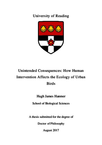 Hanmer, H. J. (2017) Unintended consequences: how human intervention affects the ecology of urban birds. PhD thesis, University of Reading.