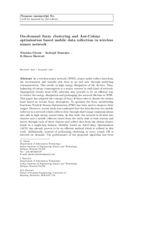On-demand fuzzy clustering and ant-colony optimisation based mobile data collection in wireless sensor network