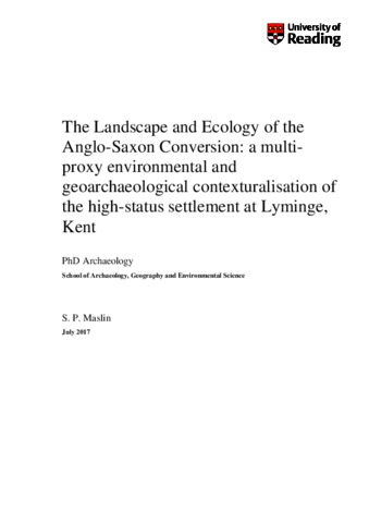 Maslin, S. P. (2017) The landscape and ecology of the Anglo-Saxon Conversion: a multiproxy environmental and geoarchaeological contexturalisation of the high-status settlement at Lyminge, Kent. PhD thesis, University of Reading.